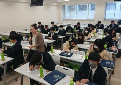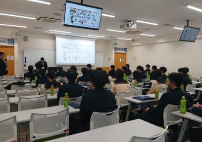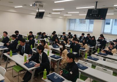 2025年12月12日(金)、2年生LSコース(選抜Ⅱ理系クラス)が、東京都武蔵野市にある日本獣医生命科学大学への大学見学会を実施しました。本日は大学説明会、および製造実習室の見学の後に、「鼻に抜ける香りの正体と測定方法」というテーマで、模擬講義を受講しました。