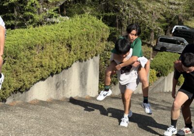 階段ダッシュから手押し車やおんぶ階段上りまで様々なメニューで身体を鍛えます。キャプテン岡本曰くキツく楽しいトレーニングで非常に充実した一日だったそうです。最後に全員で頂上から見る越生の景色は変わらず綺麗でした。