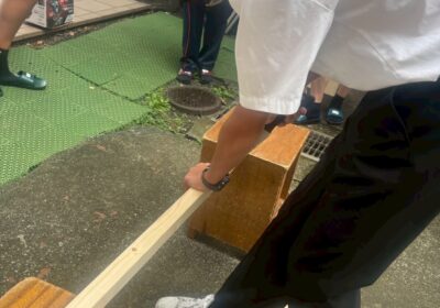 ちょっとガタガタ…(もうちょっと綺麗にできるとよかったのですが、部員に聞いたら、やっぱりDIYなのでまっすぐ綺麗に作るのは難しいみたい💦 でも、これも手作りっぽくっていいですよね!)