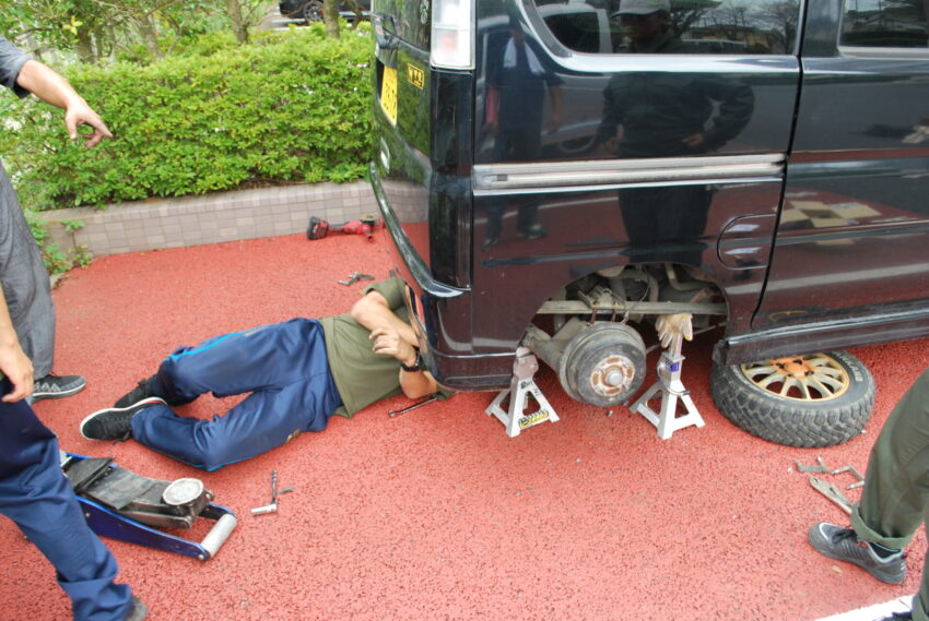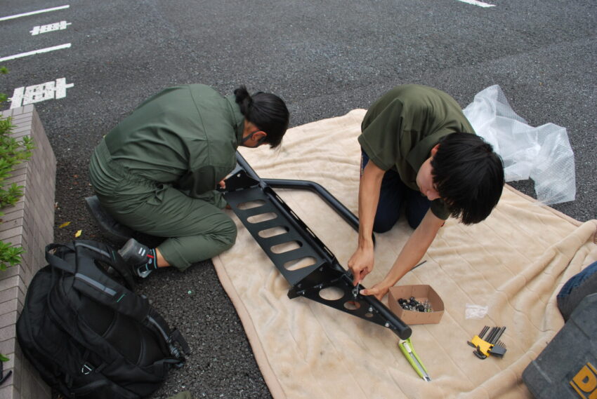 先日、9月14日(日)に行われた、第2回オープンキャンパスでは、参加した中学生にもキャンピングカー製作を手伝ってもらいました!これで、リアの土台部分の作業はほとんど終わり!みなさん、ありがとうございました!