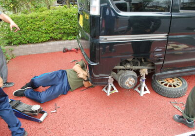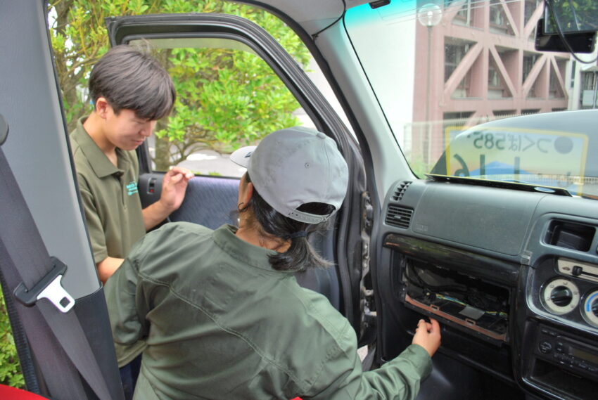 本日は、株式会社ACT・松本様をはじめとする皆様方のご協力のもと、バモスの外装パーツの取り付け作業を行いました!しかも作業は、生徒に教えてくれるというサービス付き…松本様、教育者すぎます(´;ω;`)