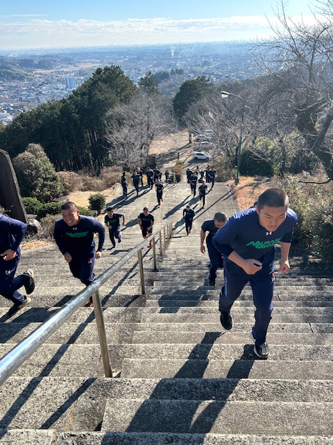 年末に、恒例の強化合宿を行いました。秋の大会では、10安打3得点、被安打5で5失点と武蔵越生らしくない非常に悔しい負け方をしてしまいました。あの悔しさを一瞬とも忘れることなく「進化」していきたいと思います。真の力は、やはり、「艱難辛苦」を乗り越えて身に付くものと自覚し、努力して苦労して真の力を手に入れ、夏には「勝負」したいと考えます。武蔵越生らしさが武器になるまで鍛えて夏に臨みたいと思います。