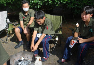 10月は、本校中庭にて、テントの設営や焚き火体験などをします。