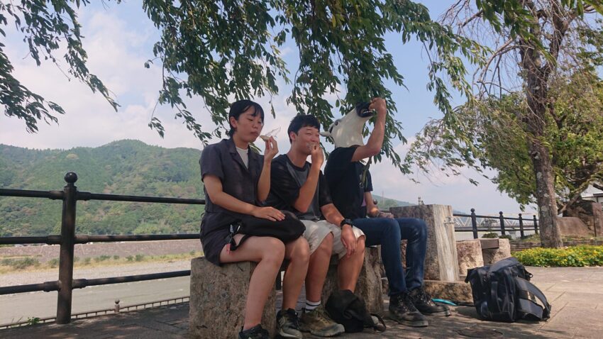 道中では急に現れる坂が多く登る度に全員苦しいという表情をしてました。山や川、普段生活している街を見下ろしたりと本当に魅力的な場所が多かったです。普段はこうした景色は、キャンプに行く途中でも車窓から眺めているだけ。しかし、自転車で行くキャンプでは、窓越しではなく目の前にそうした景色を見ることができ、また普段とは違った印象に見えました!