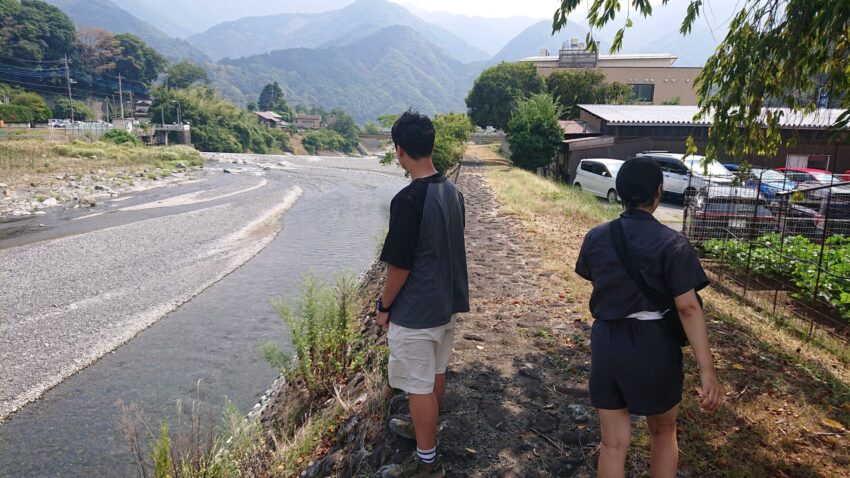 とにかく川が綺麗!ダムの下は思ったよりも深く、部員も腰まで浸かるくらいの深さがあり、水温も15℃前後と冷たい!真夏には最高の場所ですね!でも、カワビルにはご用心⚠️ 遊んだ後は貸切風呂があるので、こちらでゆっくりリラックス♨️