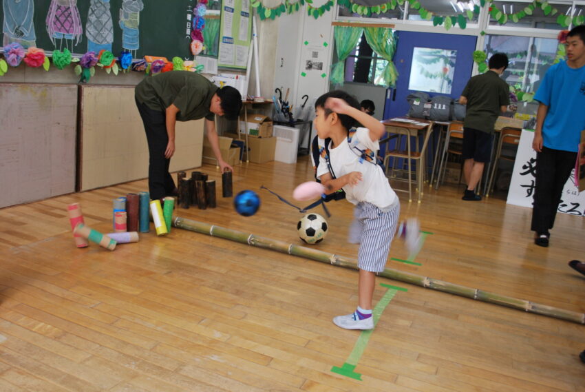 アウトドア部では、『竹ボウリング』、『焚き火風キャンドル製作』、『輪投げ』などをやりました。ちなみに、『輪投げ』は今回初出です!たくさん宣伝したので、たくさんの子供たちに来てもらいとても好評でした(^^)好評といえば、持参したハンモックも大好評でした!子供たちが楽しく遊んでいてよかったです。とても暑い日でしたが、盛り上がってよかったです、他にも様々なお店や雑貨なのが売っていてどれも魅力的でした!(∩ˊ꒳ˋ∩)